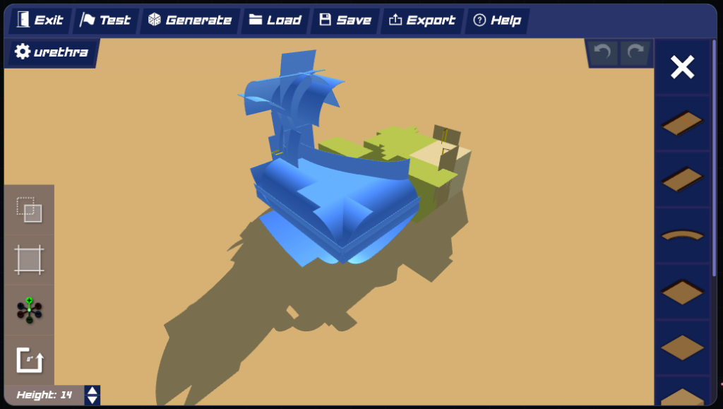 Yes, it's named "urethra." And yes, it's exactly as chaotic as that implies. Part of a two-track drop from u/Beneficial_Pie_7519 (stoncogány under the hood) with the perfectly nonchalant Reddit post title "Got bored, so I made 2 new original tracks" — this is the first of the pair, and it is a spectacular mess of flying blue geometry that somehow functions as a driveable track.