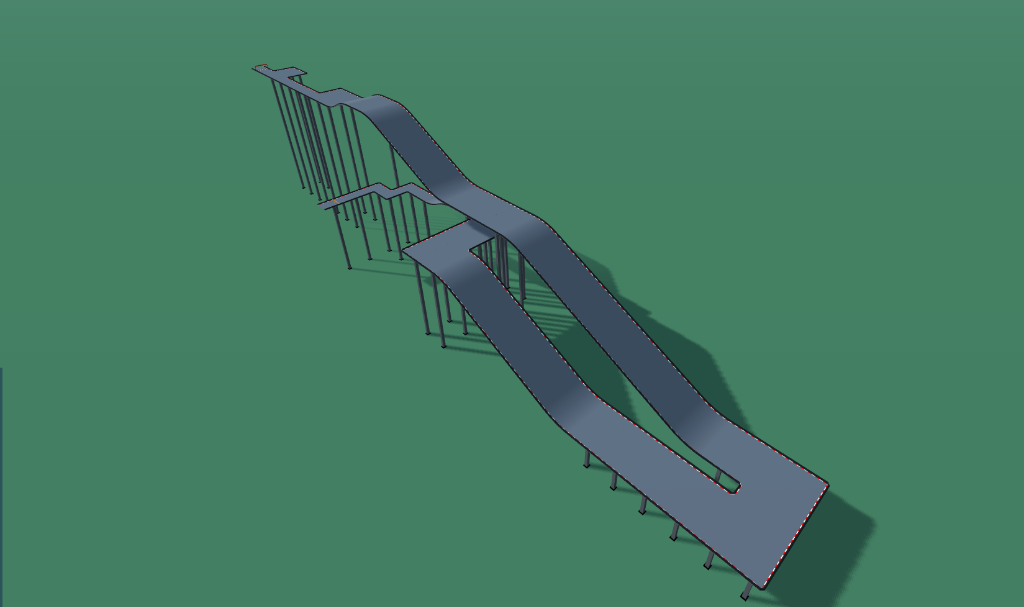 - Data Payload: ~1,479 characters of compressed geometry — a moderately sized build that focuses its budget on the elevated highway structure and split-path routing.